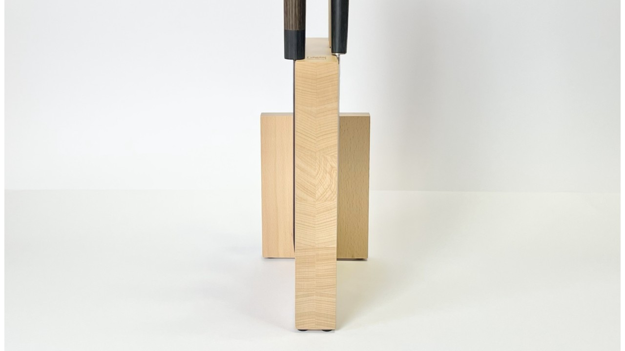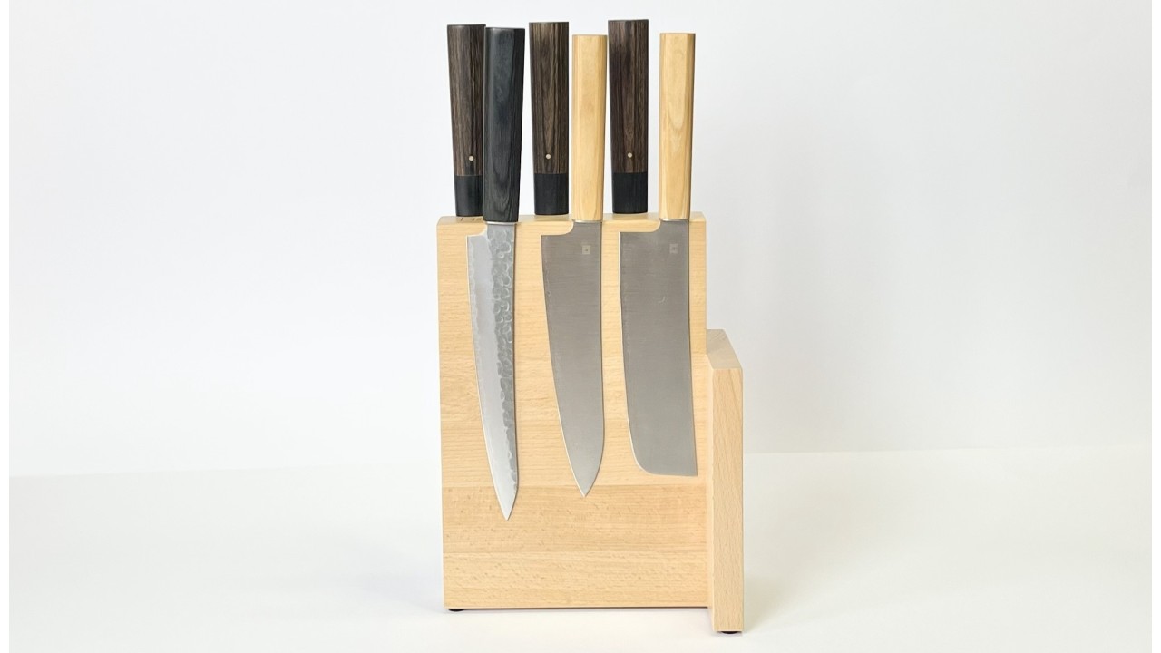 Questo portacoltelli in legno di faggio combina funzionalità e design minimalista.